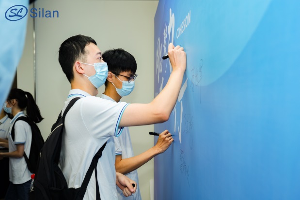 7月6日上午,陽光熱烈,士小蘭給每個同學(xué)準(zhǔn)備了貼心的入職禮,等待新同學(xué)的到來。同學(xué)們在簽名墻上留下自己帥氣的大名,完成新人專屬任務(wù)卡,心愿墻上留下自己對未來的期待。再給遠(yuǎn)方的家人朋友寄去一張士蘭明信片,告訴他們:我在士蘭很好。