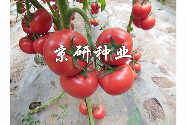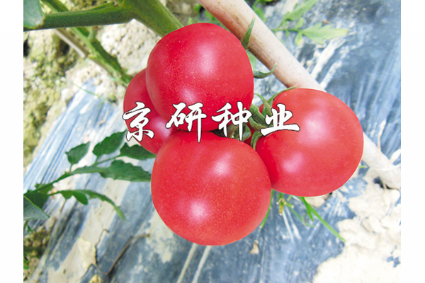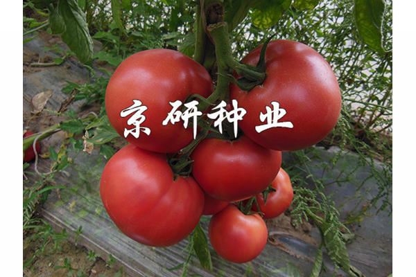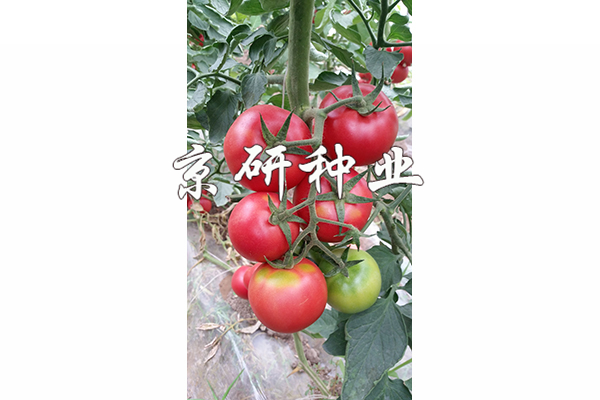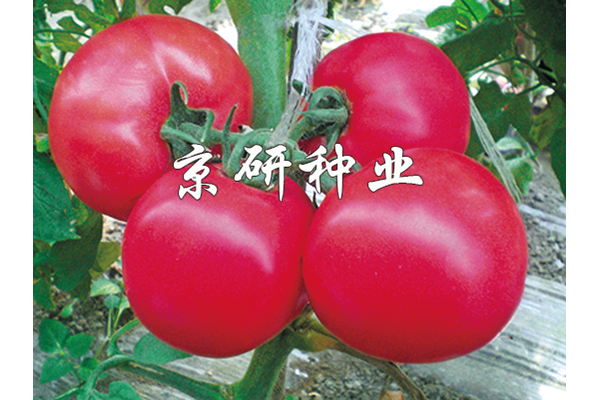 粉果番茄雜交種,中熟,無限生長型,粉紅色大果,果實圓形,略有棱,每穗坐果數3-5個,平均單果重350克,單果能達600克,穩產豐產。具有抗番茄黃化曲葉病毒病Ty1和Ty3a基因位點、抗根結線蟲病Mi基因位點,適合春秋保護地種植。栽培管理同常規,每穗3個果為宜。